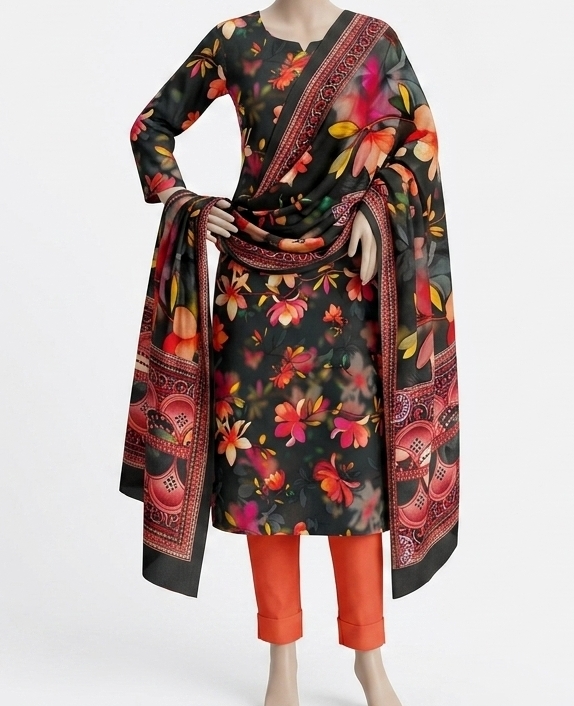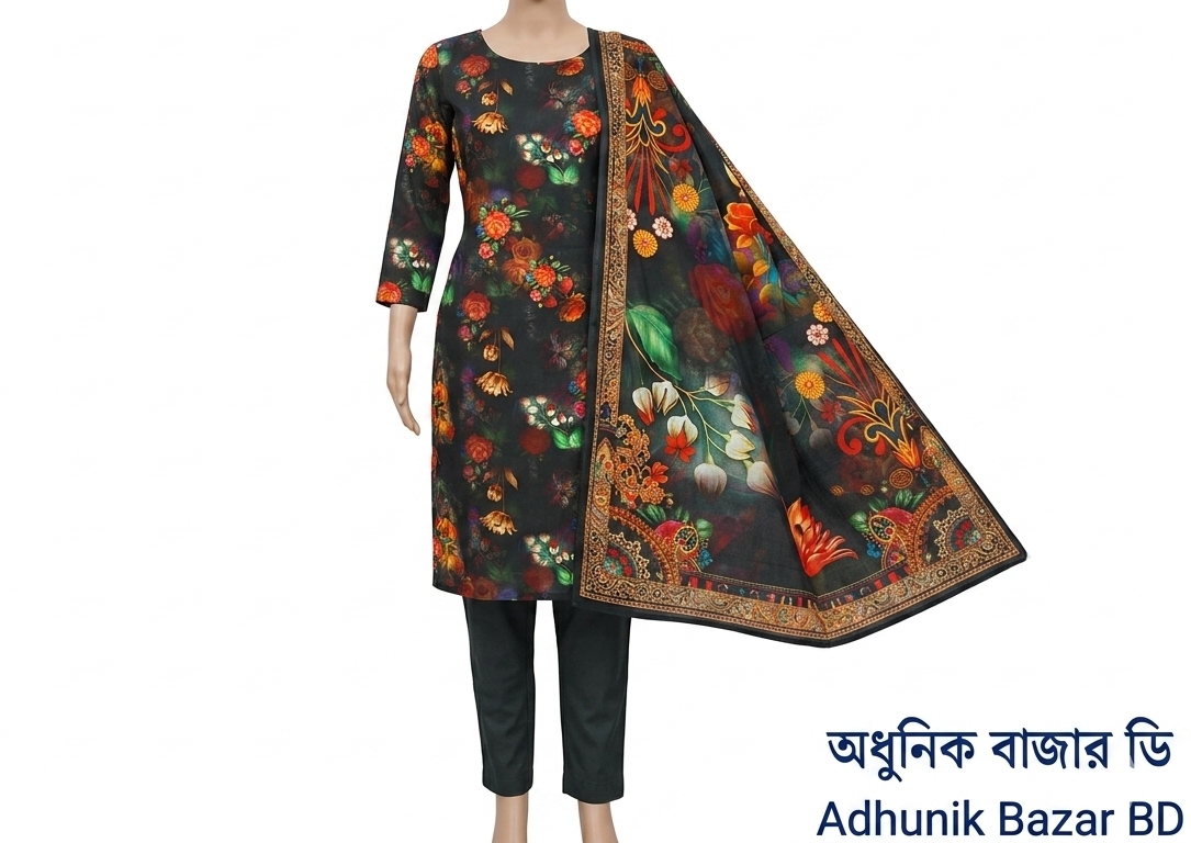 কামিজ: ১০০% পিওর কটন (সুতি) ফেব্রিক। হাই-কোয়ালিটি ডিজিটাল প্রিন্ট অথবা নিখুঁত এমব্রয়ডারি কাজ করা। লম্বায় ৪৮ ইঞ্চি পর্যন্ত তৈরির সুবিধা।